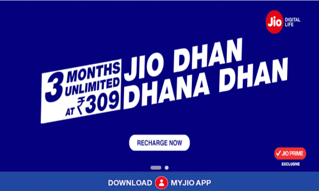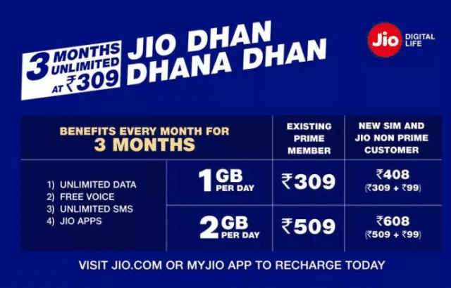 Jio Dhan Dhana Dhan offer: 3 months unlimited at 309 Rs